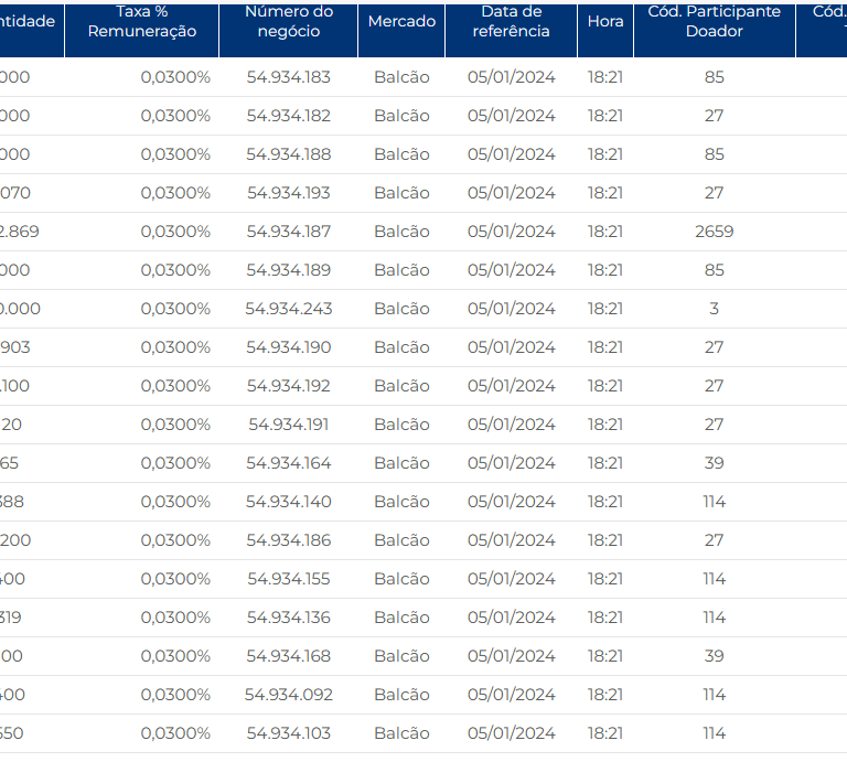Relatório por ativo, Negócio a Negócio.