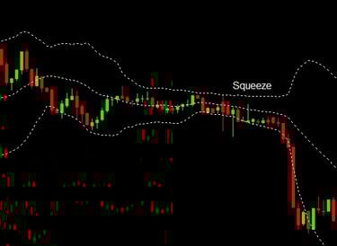 A "Squeeze" é uma condição em que as Bandas de Bollinger contraem-se, indicando uma fase de baixa volatilidade. Esse fenômeno é visualmente representado quando as bandas superior e inferior se aproximam significativamente da média móvel, indicando que uma expansão volátil pode estar iminente. Uma estratégia comum é esperar até que as bandas se expandam novamente após o "Squeeze", pois isso pode indicar uma nova tendência ou uma forte movimentação direcional de preços.