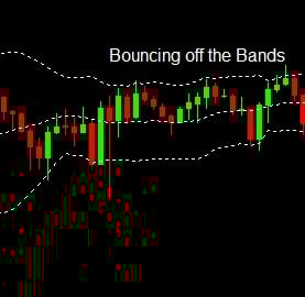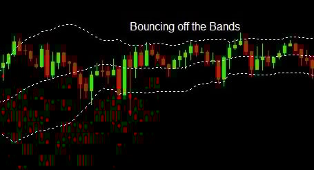 Por sua vez, a "Bouncing off the Bands” (quique nas bandas) baseia-se na observação de como os preços reagem ao tocar ou ultrapassar as Bandas de Bollinger.