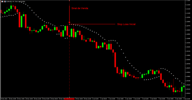 Em uma operação de Venda, o investidor pode optar por colocar o Stop Loss acima do ponto do Parabólico SAR mais recente, pois se a tendência de baixa falhar e o preço ultrapassar o ponto do SAR, a posição é encerrada para limitar as perdas.