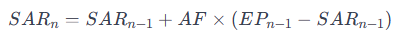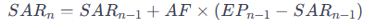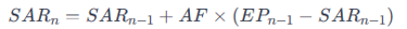 A fórmula para calcular o Parabólico SAR leva em conta o preço atual, o ponto de parada anterior e um fator de aceleração: